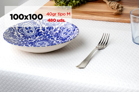 Mantel papel 100x100cm 40gr Tipo E Blanco, 480uds