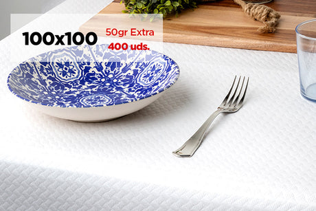 Mantel papel 100x100cm 50gr EXTRA Blanco, 400uds