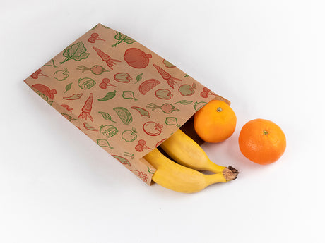 - Fruterías/Verdulerías: Bolsas con decoración frutal