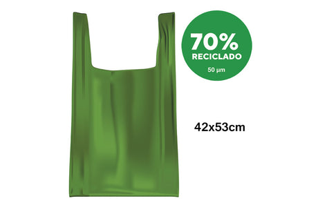Bolsa Plastico Asa Camiseta 42x53cm Verde 1kg. 50µm Reciclada 70%