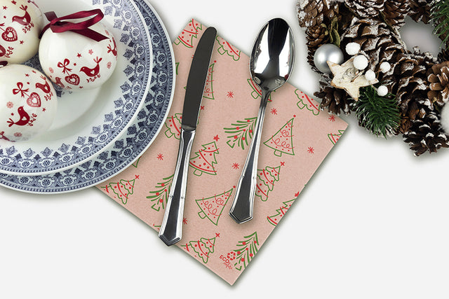 Servilleta Punta Punta 40x40cm Eco Natu Deco. Aspen (Tinta Roja y Verde), 600uds