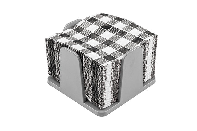Servilletero 20x20 PS Gris -c/Servilleta- (Vichy Negro) 12uds