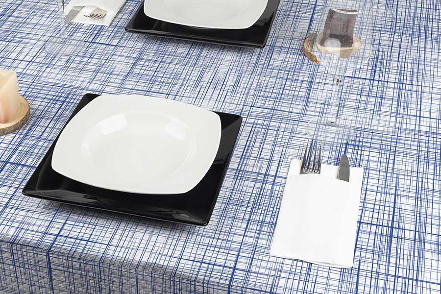Mantel Papel 100x120cm Blanco Deco. Urban Azul, 400uds (Retractilado y con código EAN)