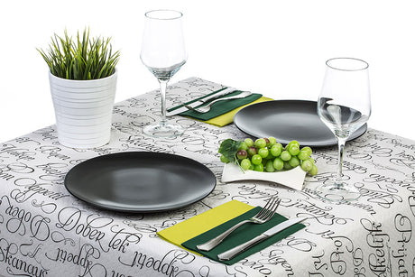 Mantel Papel 120x120cm Blanco Deco. Urban Negro, 300uds (Retractilado con código EAN)