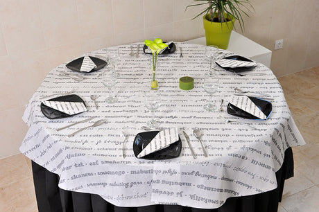 Mantel Novotex 120x120cm Blanco Deco. Buen Provecho Negro, 150uds