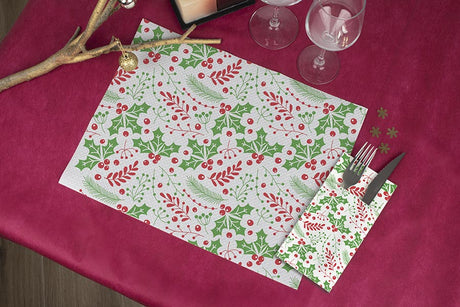 Kanguro Punta Punta 40x40cm Blanco Deco. Muérdago (Tinta Roja y Verde), 480uds