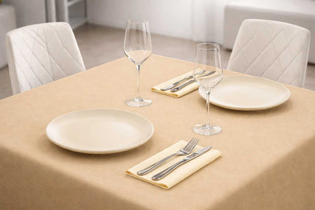 La mantelería es el elemento que más condiciona la imagen de una mesa de catering. En Hostelking disponemos de manteles cortados en todos los formatos habituales para banquete — desde 100x100 hasta 120x120 y más — en materiales Novotex, Air Soft, Bambulux y papel, tanto en versión lisa como decorada. Para eventos que requieren un acabado más cuidado, nuestra gama de manteles en rollo permite cortar a medida y cubrir mesas de cualquier longitud sin costuras.