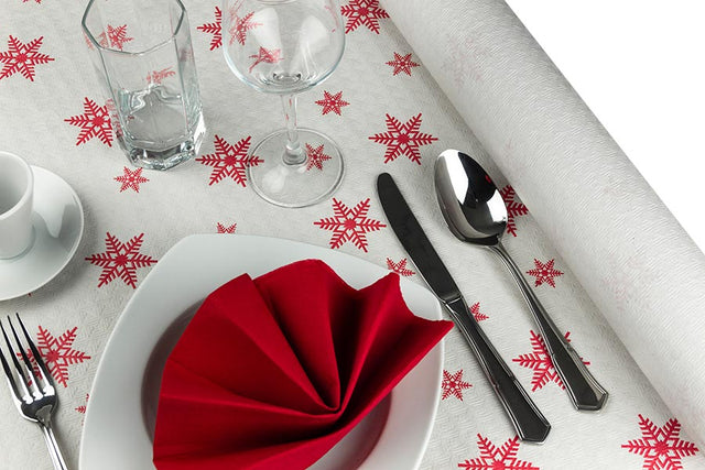 Rollo Mantel Papel 1,2x50m 37gr Blanco Deco. Estrellas (Tinta Roja)