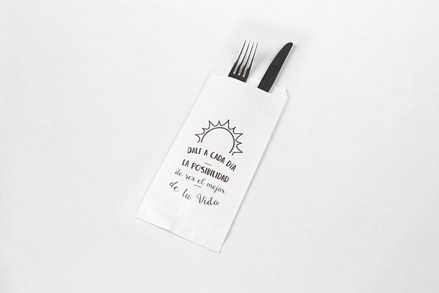 Sac Papel Portacubiertos 11x24cm Blanco + Frases 1.000u