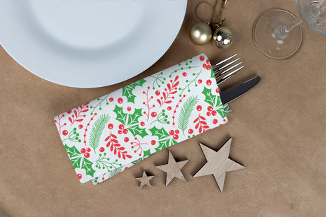 Servilleta Air Soft 40x40cm Blanco Deco. Muerdago Tinta Verde y Rojo, 300uds