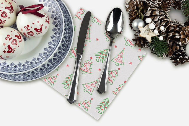 Servilleta Punta Punta 40x40cm Blanco Deco. Aspen (Tinta Roja y Verde), 600uds
